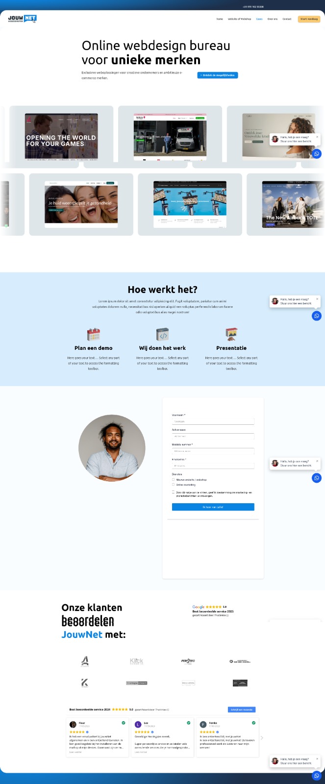 “Bij JouwNet hebben we al vele bedrijven geholpen met een sterke online aanwezigheid. Bekijk onze cases en ontdek hoe wij bedrijven zoals die van jou hebben geholpen met een op maat gemaakte website.”
